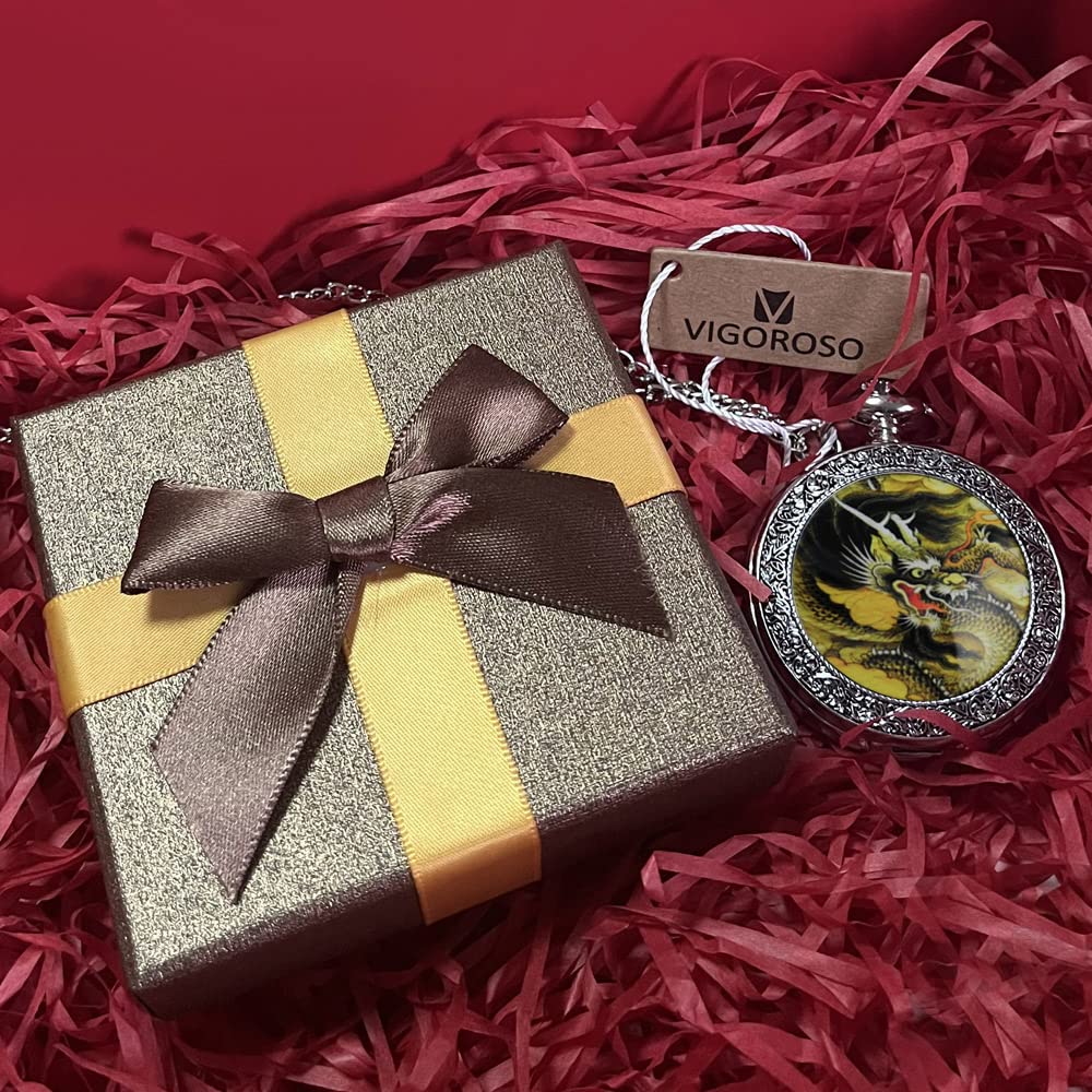 - Full Hunter Pocket Watch in elegant butterfly gift Box. The best birthday gifts for people whose signs are dragons. Dragon totem pocket watch flap male and female student Valentine's Day, birthday and graduation season gift. The best Father's Day gifts from daughter. High-grade creative gift of Chinese dragon and silver metal chain. A high-quality pocket watch worth collecting and giving as a gift.